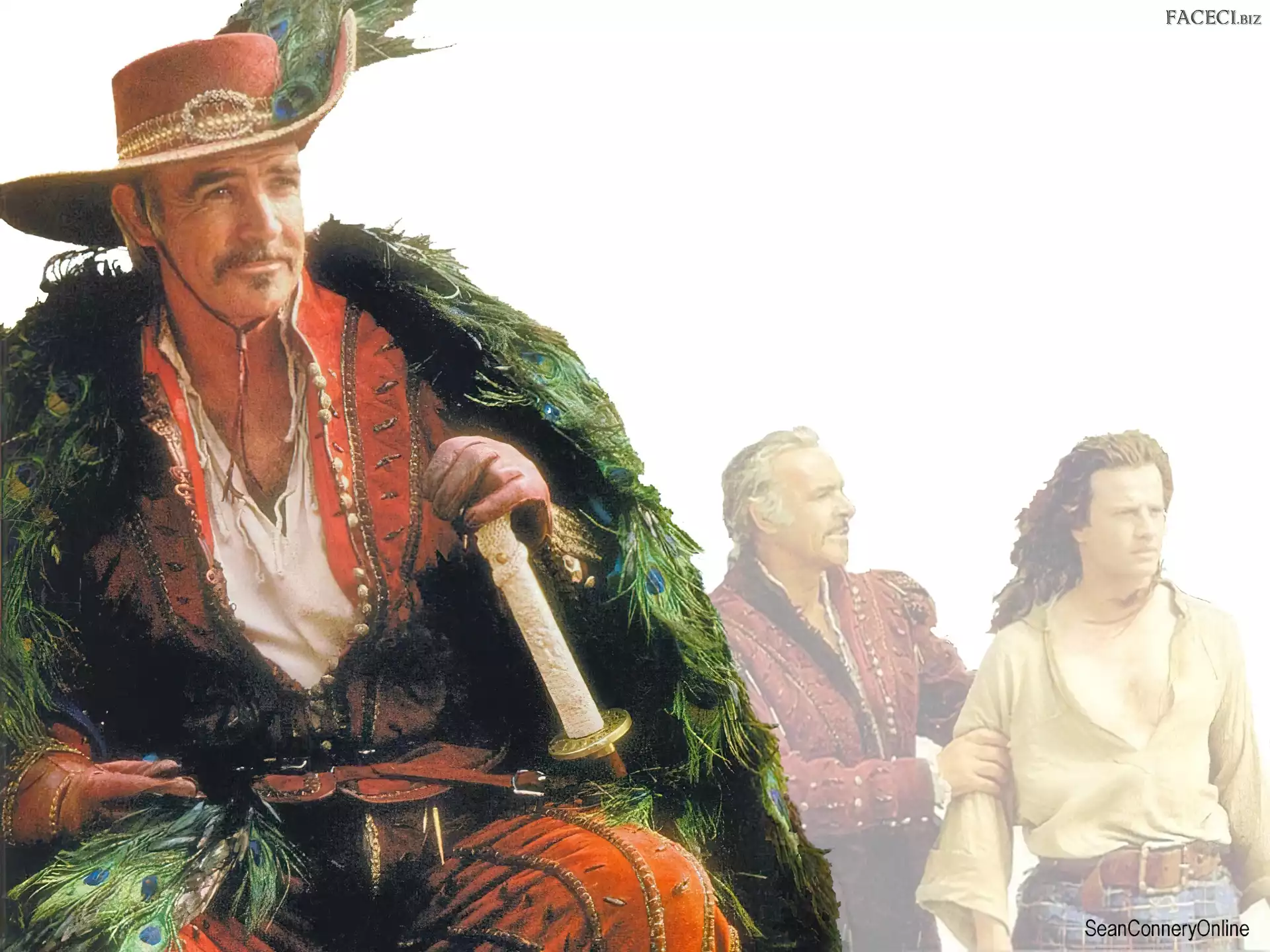 Sean Connery, Catherine Zeta-Jones Sean Connery, miecz Sean Connery, koszula w paski Sean Connery, kobieta Sean Connery, czarny strój Sean Connery, ciemne oczy Sean Connery, siwe włosy Sean Connery, zdjęcia Sean Connery, Kapelusz Sean Connery, muszka Sean Connery, 007 Sean Connery, siwe włosy Sean Connery, siwe włosy Sean Connery, pistolet